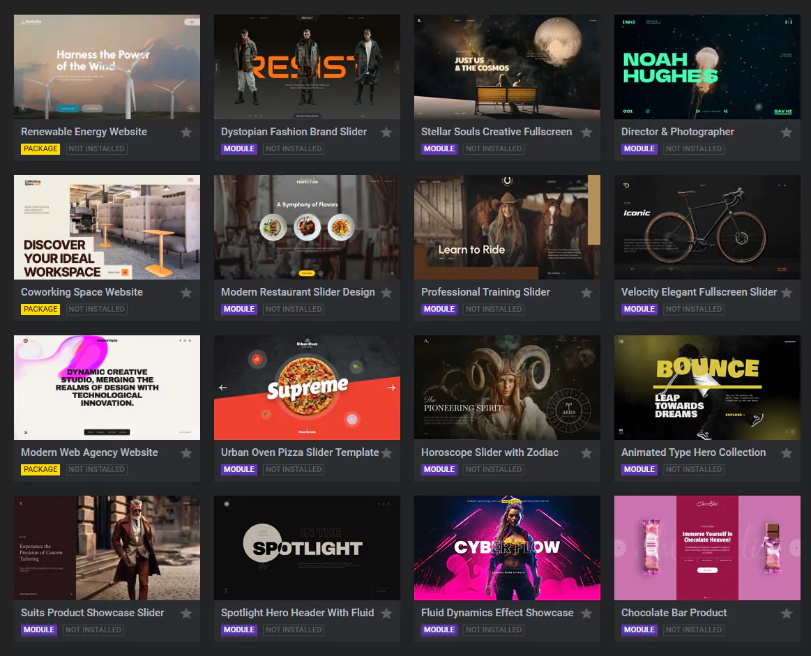 Our ever-growing template library includes more than 250 pre-made designs for hero sections, sliders, carousels, web pages, dynamic content, and more.