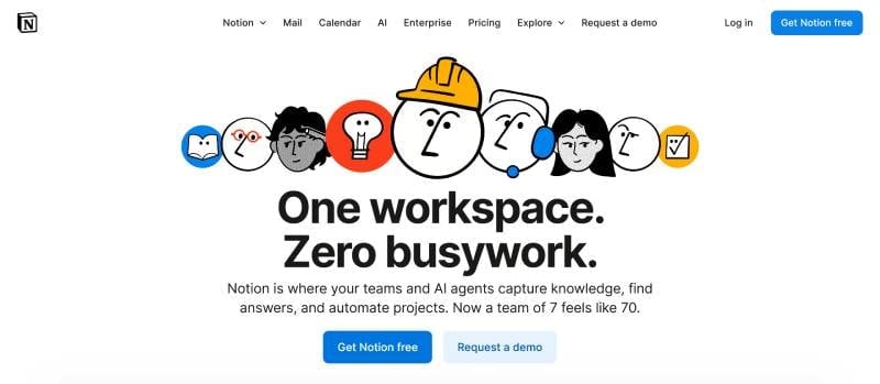 Notion combines illustration with minimalist UI to create a user-friendly website.