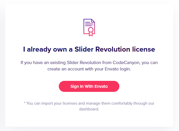 After authenticating yourself via the Envato API, your licenses will be imported automatically.