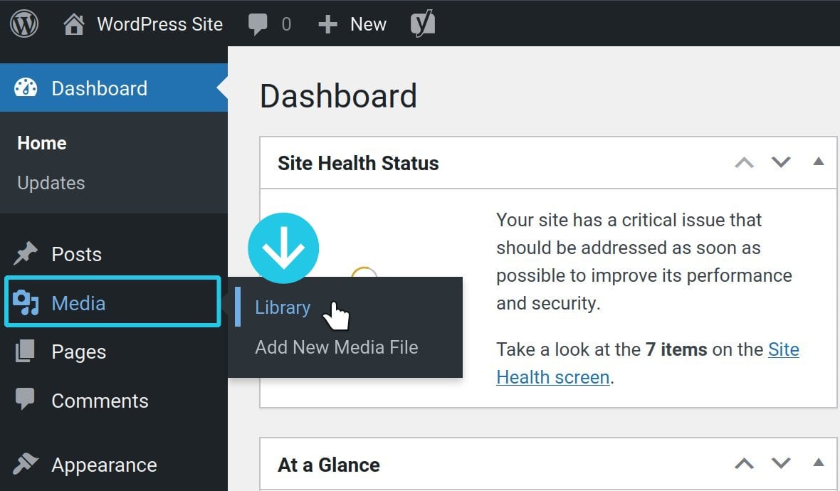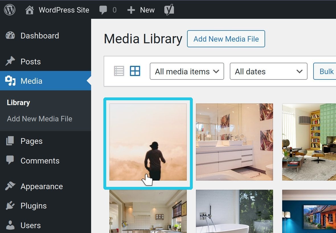 In the WordPress admin panel go to Media in the left sidebar, then click Library: