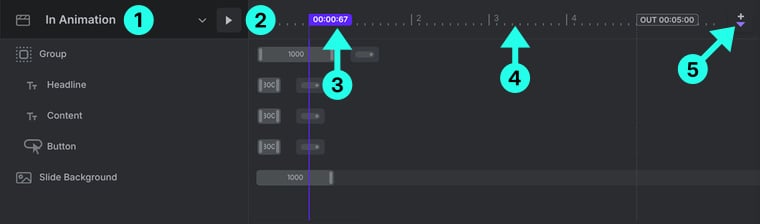 Along the top of the Timeline runs the Timeline Top Bar. It contains 5 important tools: