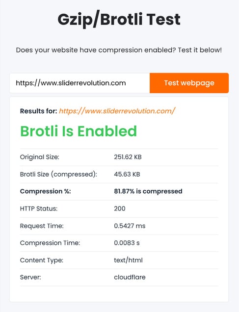You can verify if your server is using Gzip or Brotli with tools like the GiftOfSpeed Gzip Test ->