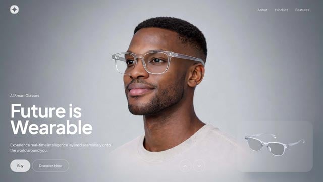 Showcase innovation in motion with this Product Presentation Slider built for next-gen wearables. Smooth hover reveals uncover design details, smart features, and everyday functionality, creating a layered, interactive experience with a clean, premium aesthetic.