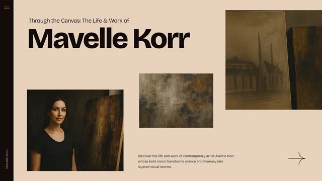 Korr turns your work into a cinematic story. Glide through side-scrolling slides with bold imagery, layered transitions, and refined typography that highlights your biography and projects. Ideal for artists, galleries, and personal showcases with editorial flair.